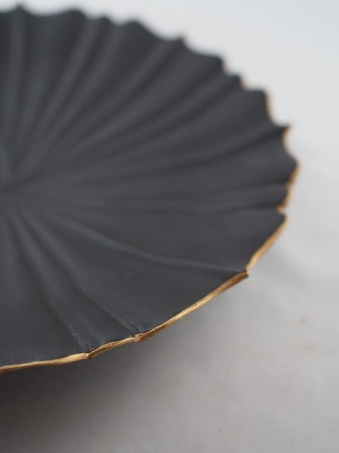 [木下和美] K-29 黒×金 輪花皿 L