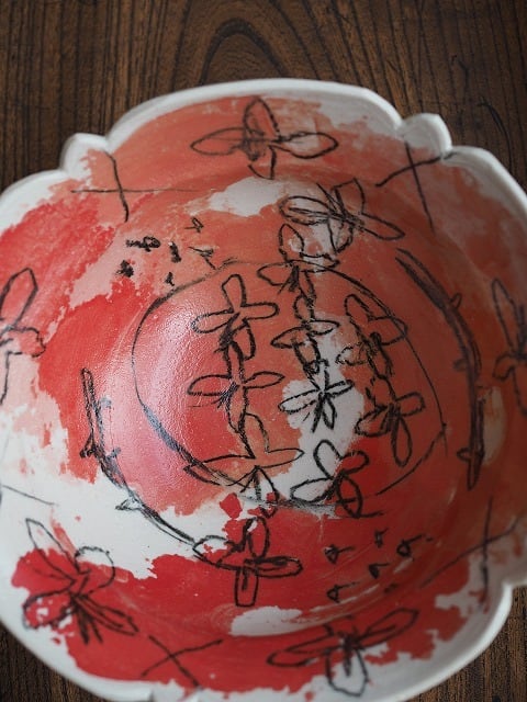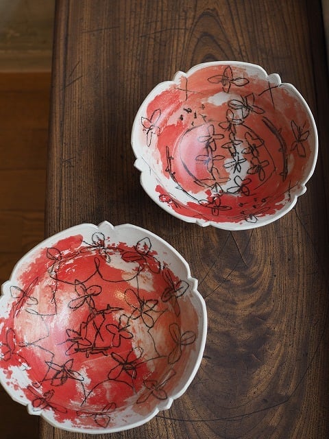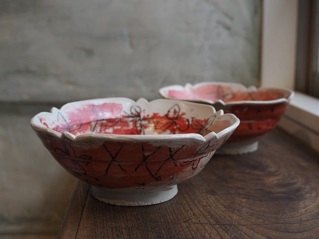 [畑中圭介] 35・34 赤とピンクの輪花鉢