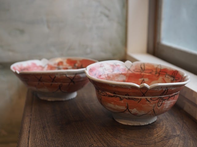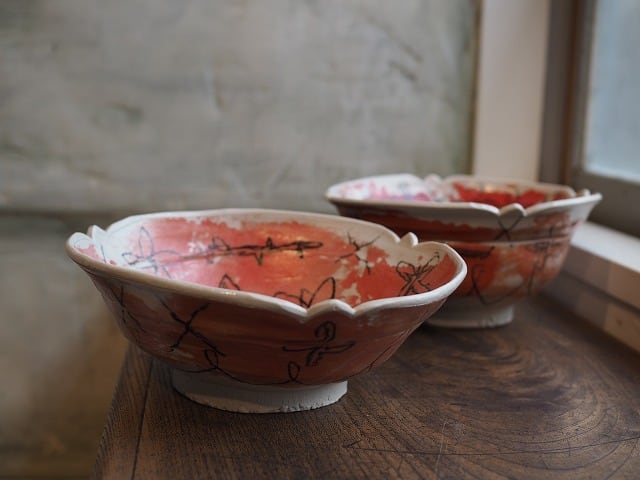 [畑中圭介] 33・32 赤とピンクの輪花鉢